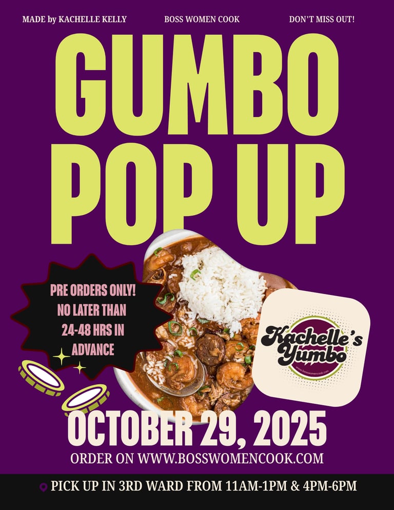 Post a Pic, Share Flyer or Video of your Gumbo, tag @BossWomenCook on IG or Facebook, and use #KKYumboGumbo — and you’ll get $2 off your next order!